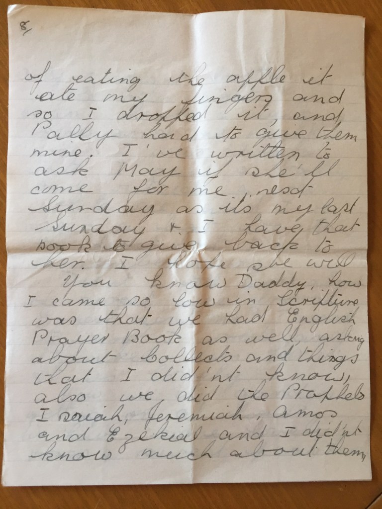 You know Daddy, how I came so low in Scripture was that we had English Prayer Book as well asking about Collects and things that I didn’t know, also we did the prophets Isaiah, Jeremiah, Amos and Ezekiel and I didn’t know much about them, Only I wasn’t bottom.