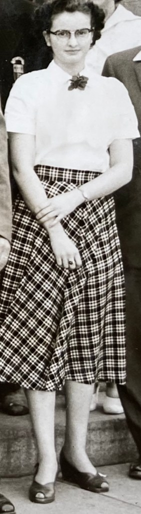 The earrings were old white flower ones – kind of crocheted – I’ve had a year or so & I dyed them! Think I’ll dye old white gloves to match!! This dress was a record I think – I had it cut out and begin sewing Thursday afternoon & had it all finished & ready to wear by Friday tea time! Afternoon. Myrtle popped in then “Just to see if I looked the same – she hadn’t seen me for so long!” So I said goodbye to catching the post at noon – however if I mail this tomorrow perhaps it will repeat the 4 day record of my last letter. By the way Myrtle sent her love! I haven’t yet told you what we did on the 26th- well, we booked a babysitter and decided we would go out to dinner, but otherwise hadn’t got into details, then on the Thurs. Phyl phoned me (Phyl & Alex have their anniv. the same day you remember) & invited us around for a drink & suggested we go out together, so that is what we did. We went around there about 7:30 & had a couple of drinks & then we went to a place on Rideau St. – La Paloma – for dinner. Fanni & Teddy had told us it was very nice but maybe we were unlucky for Cec & I were very disappointed. It was quite pretentious you know, but I thought the food was poor – I had fried chicken & it was just dry & tasteless. However we didn’t really let it worry us & had a good time. Dr. & Mrs. Herzberg’s party was quite a big one – all the Spectroscopy Dept. All the Fellows except one are leaving this summer & fall, so I think it was a kind of farewell gathering. Velasco (the Spaniard) has already gone of course; Dr. & Mrs. Narasimham are sailing for England today, en route to India. (They were coming to have dinner with us last week & we had to cancel because of C. Pox.); then later the Dresslers (Swiss); Dalbys, (Canadian); Moores (N. Zealand – going to California); Swalenes (U.S.) – leaving us only Dr. Liu (Chinese)! It means a big change in the group with 6 new Fellows all at once –Cec is having an Englishman. This week I am catching up a bit on my entertaining. Last night I had Phyl & Bill Dalby here with Phyl’s mother who is visiting & Dr. & Mrs. McClay. Dr. McC. is a young fellow who is Assist. Prof. at the U. of New Brunswick but who had thought of trying for a Fellowship with Cec instead. He finished his Ph.D. a year ago (Cec was one of his examiners) & when he took the teaching job instead Cec suggested he spend the summer here. He is a queer duck – a terrific bore if he once gets going – but his wife is such a nice girl!! Must stop & get dinner – “Dimmy” is coming to have dinner with the children! Hugs from them & lots & lots of love from us all – Cyn.