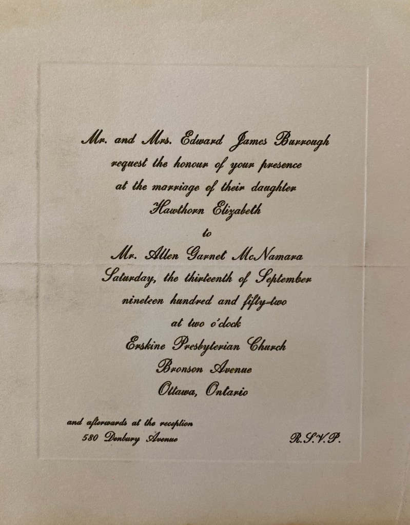 On Sat. we had Dr. Al Bryce & his bride to lunch! Do you remember Al? He was at Oxford when Cec was at Cambridge & is now a Prof. at the Univ. Of British Columbia in Vancouver. He got married in June & drove east for a big meeting in Toronto & was just in Ottawa for the weekend. They were very booked up, so Cec asked them for Sat. lunch, which was fine except I had to go shopping on Saturday a.m. as I hadn’t gone on Friday because I went to the Dr. Cec told me Friday evening & with nothing in the house I couldn’t prepare anything & anyway my mind was blank- lunch is a horrid meal! Eventually I went to the Dominion with Margie & it was jam packed to the doors & I arrived home about 1 o’clock to find them already there! The girl is called Mary, & is blonde & pretty & seems very nice. Anyway, I rushed around & at about 2 we had lunch- soup, (Campbell’s – chicken & rice & cream of celery!) hor’s d’oeuvres variés (with shrimps, asparagus, liver sausage, egg, tomatoes, cucumber etc.) hot rolls, angel cake (bought) with fresh peaches & cream & coffee – so it turned out all right in the end! They left about 3:30 & then Cec was going around to Cy & Margie’s & taking Lindy for the ride, so I took one look at all the washing up & went along too!! Margie gave us tea- & what do you know?? – baby sister is due on St. Patrick’s Day!! We laughed & laughed & Margie was full of the fact that you had guessed! That’s not all – Margie told me in the morning & when I burst out with it at lunchtime, Al & Mary up & said they were that way too – just married in June, as well! Catching, isn’t it?! Lee thought she had a little Algy too but hers came to nothing & she was so disappointed, poor Lee. Actually, when we got back from Cy & Margie’s, Lee & Jim & Barry arrived to collect their stuff from the basement as they were moving into their new apt. So you can imagine when the lunch dishes got done. Lindy was just sweet with Lee – no shyness or strangeness with any of them, but she just went straight to Lee & hugged her & sat up on her knee & didn’t want to let her go at all, so there’s no fear that she has forgotten her Grannie.