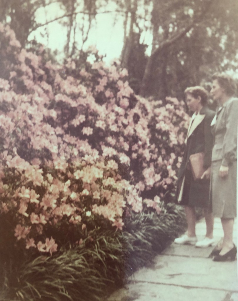 Cyn’s photographs are more successful in black & white than colour- sadly the colour of the marvellous azaleas have faded in yellowed snaps. But the friends she writes of and the gorgeous cars show up quite clearly! Of course in the days of rolls of film, pictures remained in the camera until the roll was finished, so her photos of her trip at Easter were not developed until July 1947, and include some of her visit to her New York relatives then. The black & white snaps start in September 1946 at Lois’ airport, show winter coat weather, and finish with the Easter trip. Also included are Easter Sunday snaps of her New York relatives- I’m assuming it was the same Easter!