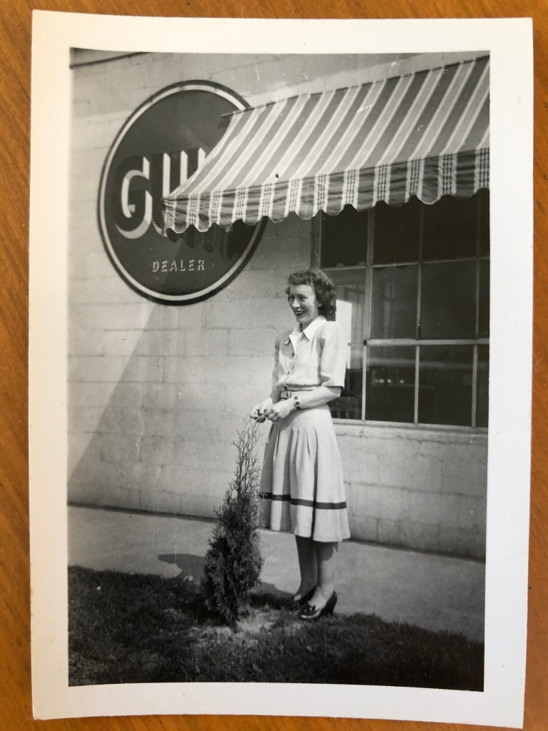 Cyn at the airport in September 1946.Cyn’s first flight!Til.Lois.Til, Bill, dog, and the car!Bellingrath Gardens, Mobile Alabama, March 1947.Azaleas!Bellingrath Gardens.Til, Cyn, and Lois.On the road: Cyn pointing, with Til and Mildred. Mona and Owen visiting Highland Mills at Easter.Hugh and Little Mona on Easter Sunday.