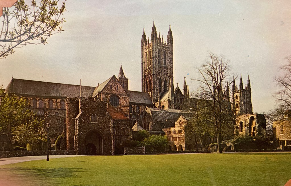 Ruth & the boy showed us the cathedral (I think we would have seen more, and taken in more on our own) (ungrateful me) and it is lovely – the squarish front with the figures of the saints & kings and queens reflected in the sunlight. However, they showed us Vicars Hall, a 14th century dining hall set with pewter plates etc. which we couldn’t have ordinarily seen. From the window we had a beautiful view of the oldest Street, intact, in Europe – Vicar’s Close. I hope you have seen it, it was lovely with walled gardens in the sunset but I can’t describe it. At tea Peter Haynes came in and I liked him very much but he just shook hands & kissed (they do it an awful lot in England) us (Mummy & me that is) and then dashed upstairs & changed into clerical garb and dashed off after shaking hands through the window. He had a meeting, he seemed awfully busy.