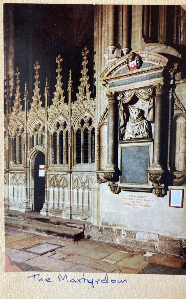 We saw the spot where Thomas à Beckett had been killed but the shrine had been destroyed by Henry VIII of cursed memory and some fool nobleman had his memorial thing with a bust of himself just above on the wall so there was just the floor & 3 square ft. of wall.