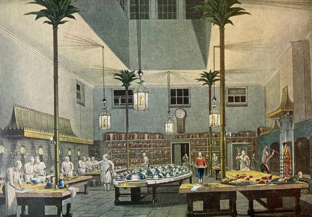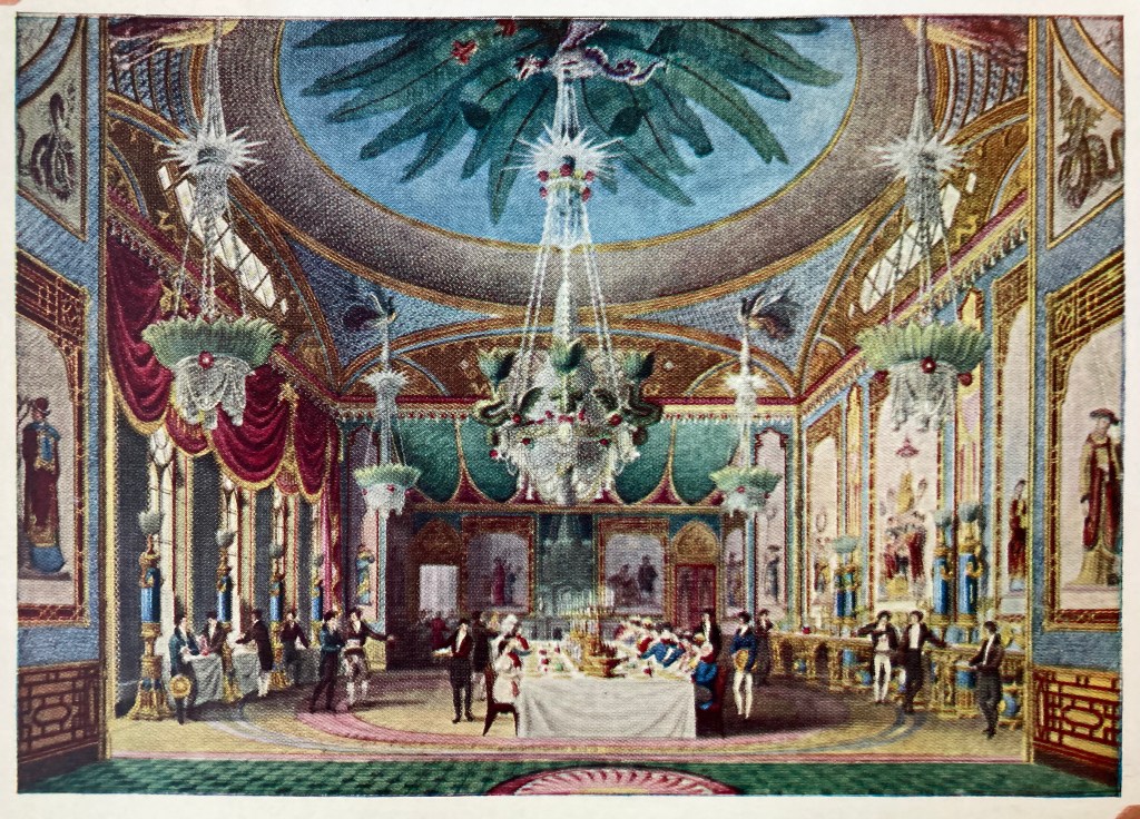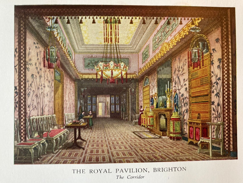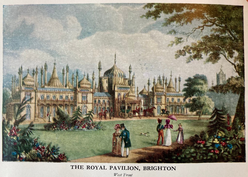 However, Brighton quite made up for it and Stonehenge because at Brighton we saw the Royal Pavilion built by the Prince Regent, later George IV as a summer place. It is perfect – marvellous – ludicrous – fantastic – overwhelming – stupendous. Impossible to describe. It is Indian outside – with a million Taj Mahal domes, and mad Chinese inside – priceless – I will send you a couple of postcards but you must send them back, they are part of my collection. Mummy & I absolutely loved it.
