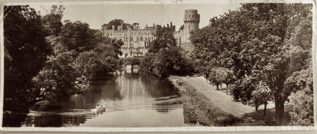On Monday we went to Stratford upon Avon, stopping off at Warwick Castle on the way. It marvellous – after the ruins it was nice to see one intact & well cared for. The most marvellous things in it were the portraits. Henry the eighth & Elizabeth & Henry VIII as a boy (sweet) and Charles I and Queen Henrietta Maria. There were lovely tapestries of faery woods with princesses & bears and heroes in. One room had Marie Antoinette’s bed in it and my favourite thing in the castle – Marie Antoinette’s clock. The clock was flat iron – sort of like a sundial with Roman numerals traced on & lines & delicate iron hands. And on the points of the hours coming out from the middle were the Twelve Stations of the Cross in little medallions of red and white china. The whole thing was so delicate and somehow like Marie Antoinette, poor thing.