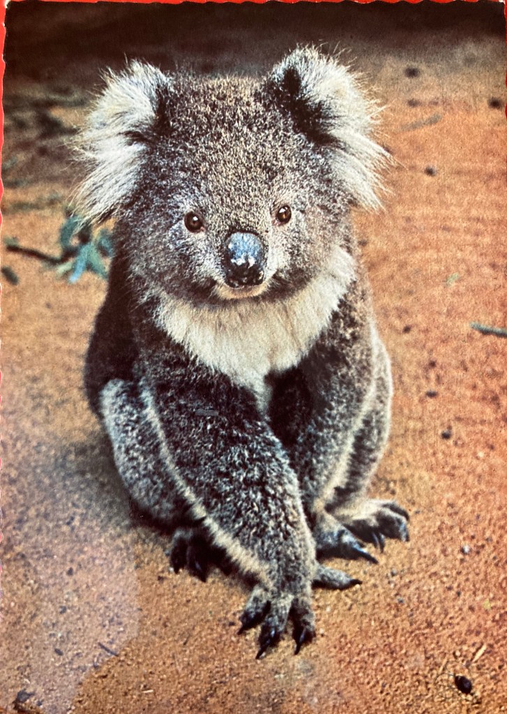 And a month or so later there arrived a large box in the Porter’s Lodge from Australia containing a surprise present sent by Cec who had arrived home weeks before. It was a lovely soft huggable stuffie of a koala bear just like the postcard! An instant hit in residence.